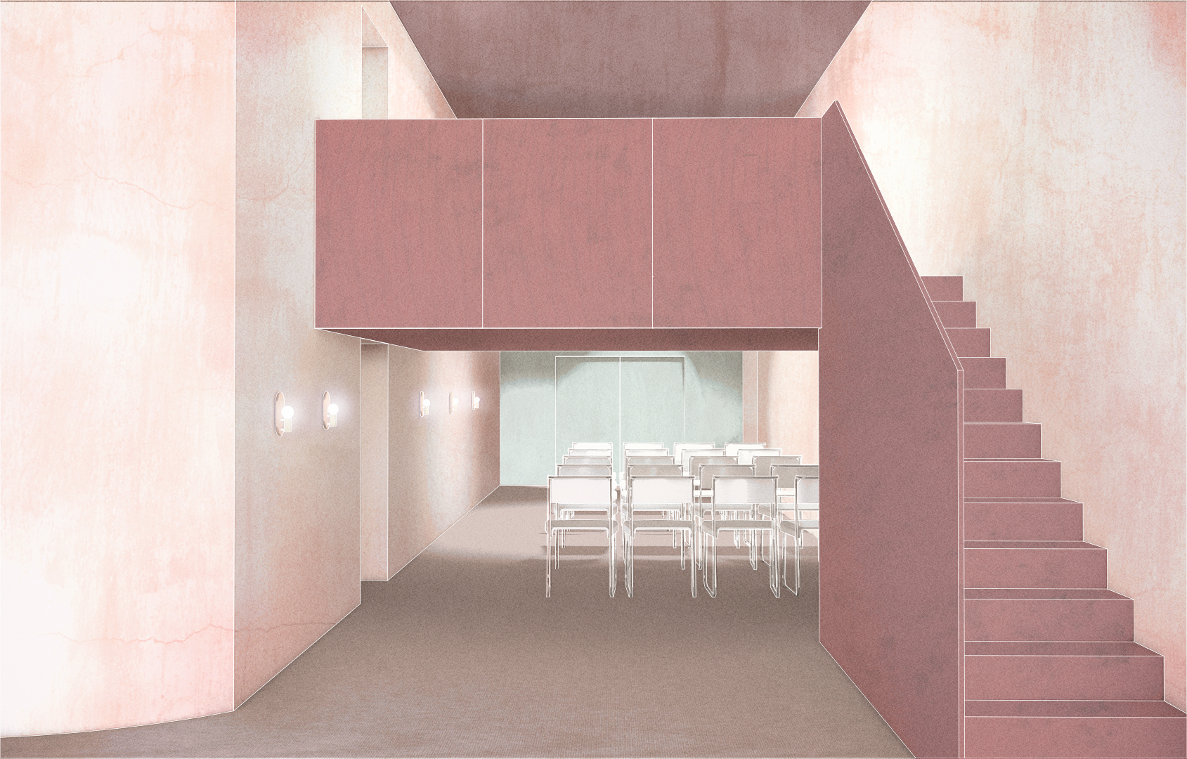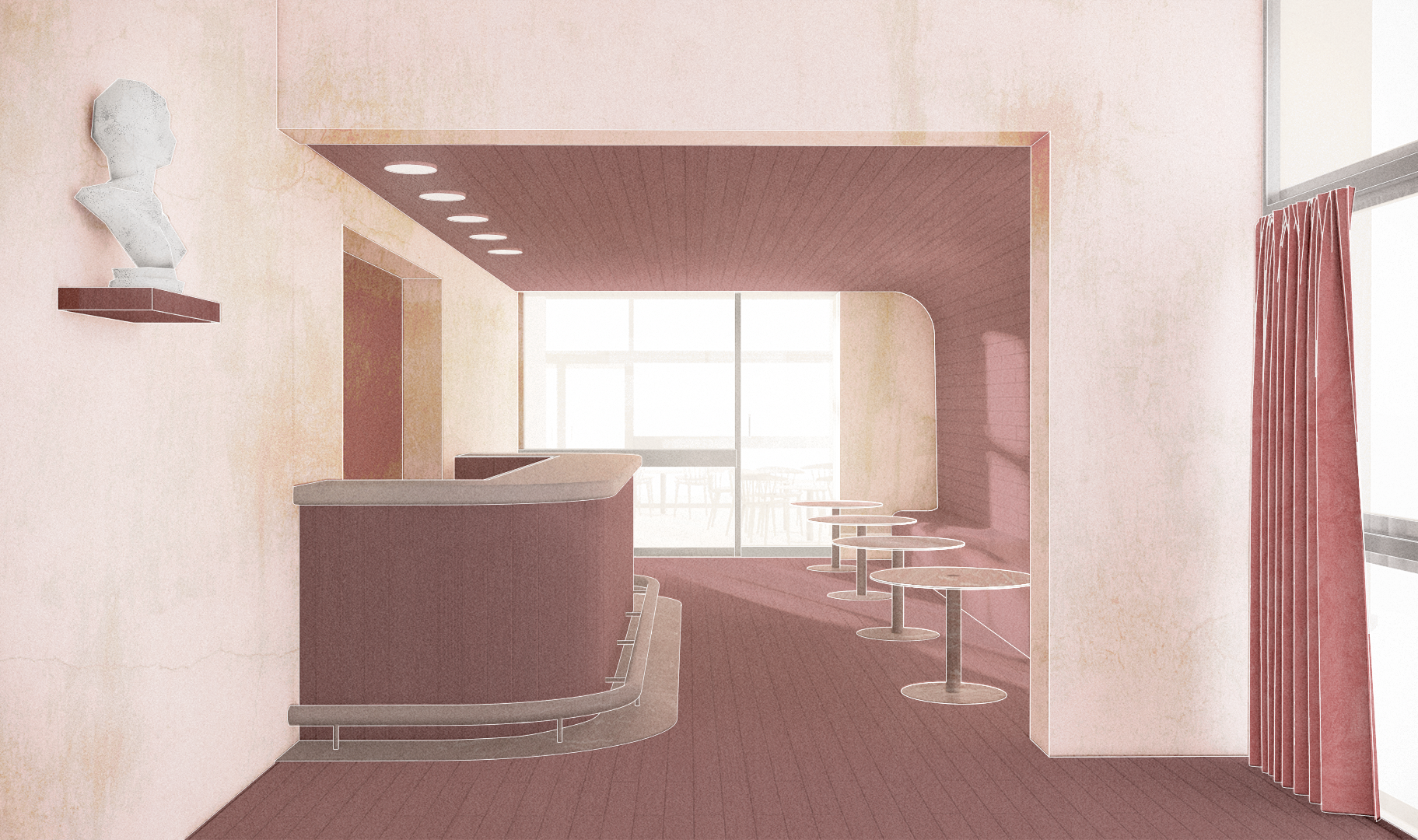 The rationale is to ‘modernise’ the concept of today's Public House by offering a new type of public facilities while at the same time celebrating a piece of cultural heritage by bringing back the pub to its 1960s original state which had open façades, a central bar and a bistro. Re-create the interior with its significant timber panelling and furniture’s. Remove all non-original partitioning walls and claddings, to reveal the central concrete service core. Reinstate the characterful graphics and soft curtains while upgrading the ventilation and heating system to comply with today’s standards and low energy consumption.