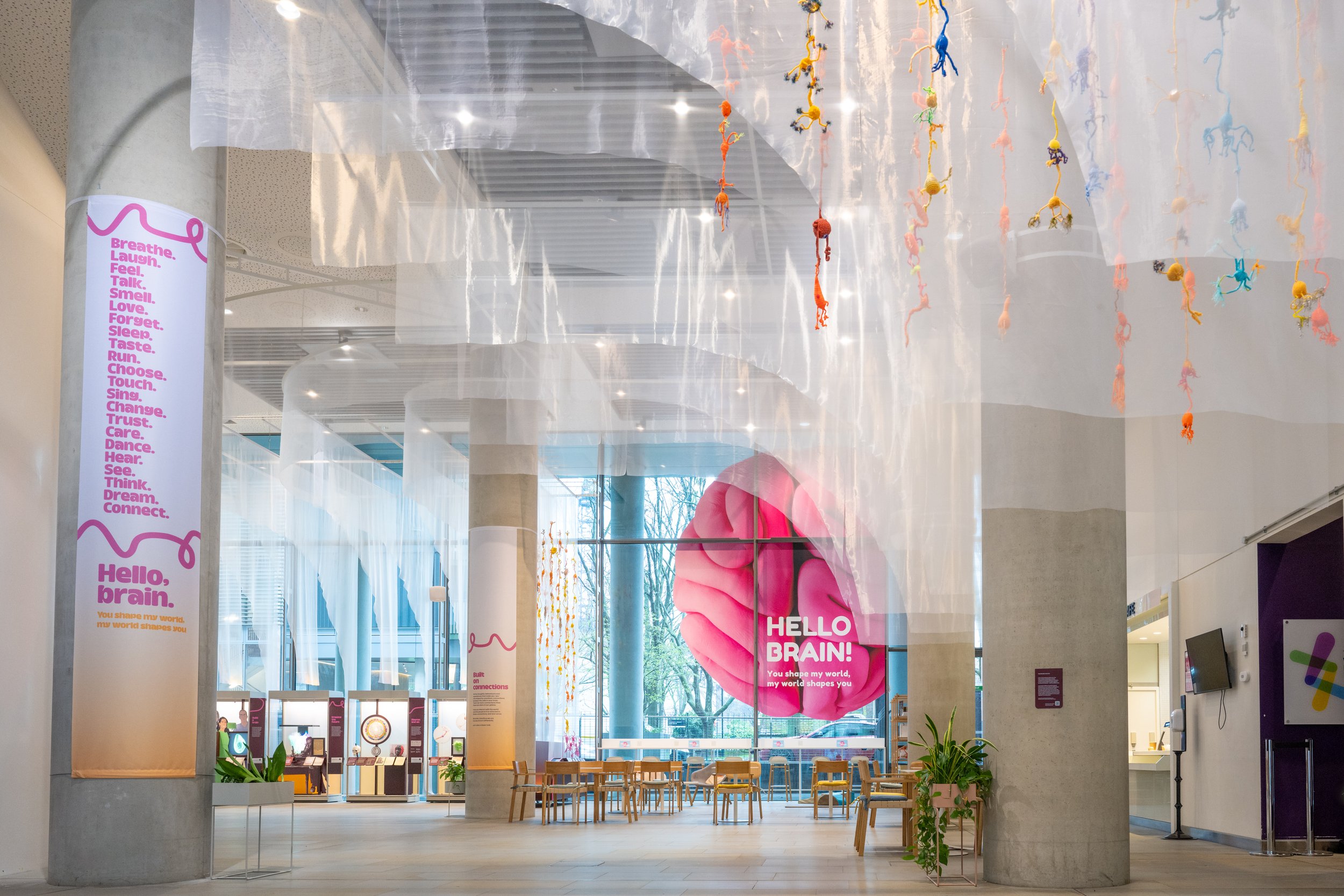 A 20m long curiosity wall exploring antibiotic reliance from micro to macro scale - from the abstract form of real bacteria culture, through the personal stories of the people who fight bacteria, to today’s global search for new antibiotics.